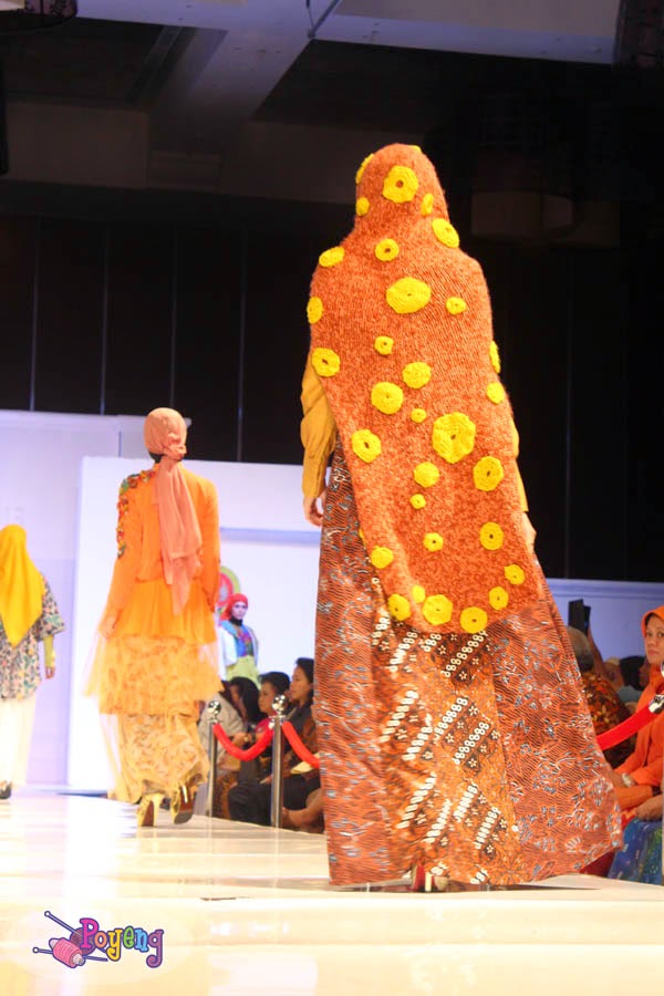 Mia Ridwan adalah salah satu desainer APPMI DIY yang malam ini memakai batik Kulonprogo di dalam rancangannya. Dan 3 rajutan yang dibuat Poyeng untuk ibu Mia di fashion show ini, dua diantaranya dipakai sebagai bagian dari baju pembuka dan baju penutup koleksinya! \OoO/ *ngga nyangka..